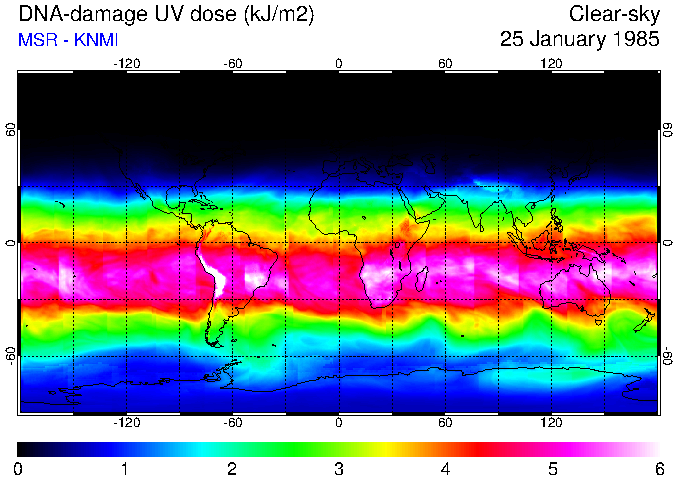 DNA-damage UV dose of 25 January 1985