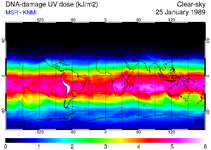 DNA-damage UV dose of 25 January 1989