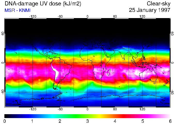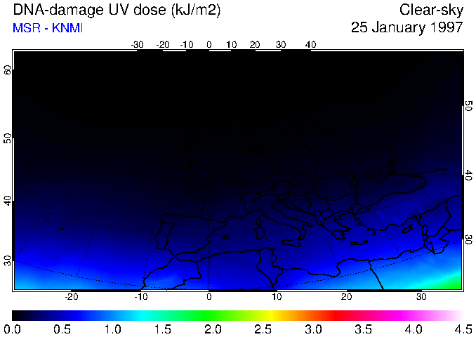 DNA-damage UV dose of 25 January 1997