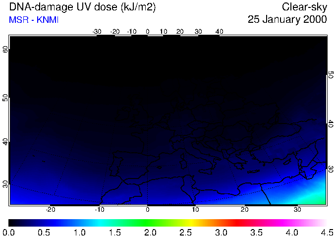DNA-damage UV dose of 25 January 2000