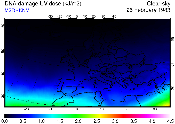 DNA-damage UV dose of 25 February 1983
