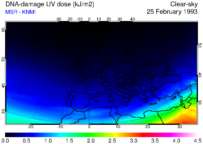DNA-damage UV dose of 25 February 1993
