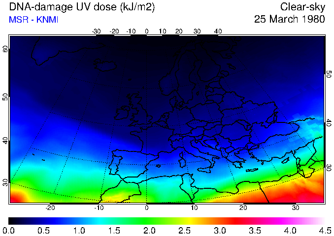 DNA-damage UV dose of 25 March 1980