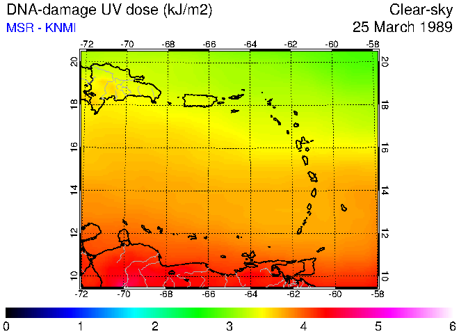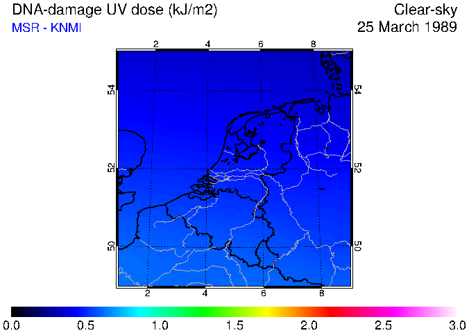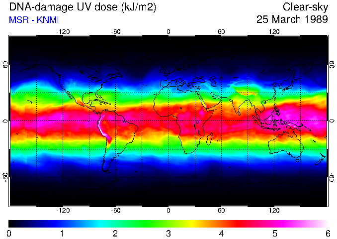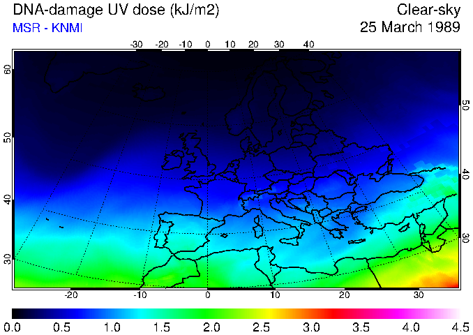 DNA-damage UV dose of 25 March 1989