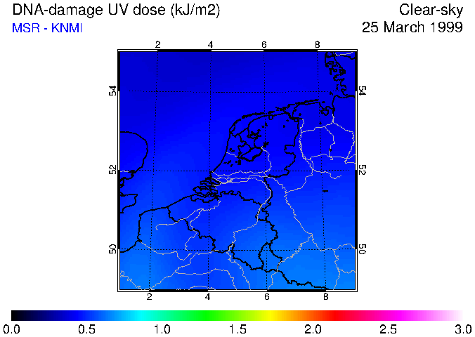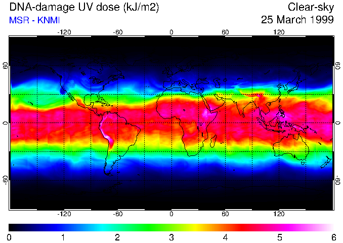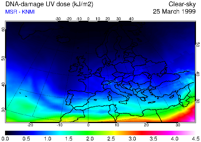 DNA-damage UV dose of 25 March 1999