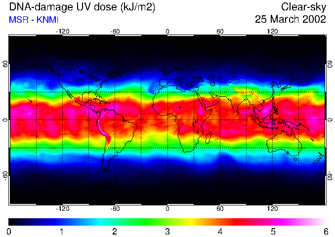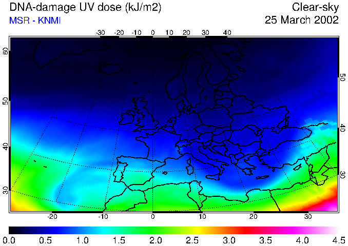 DNA-damage UV dose of 25 March 2002
