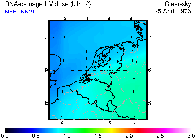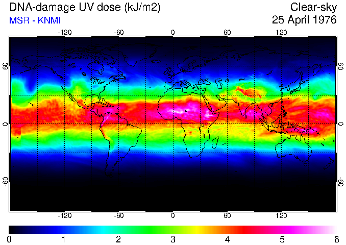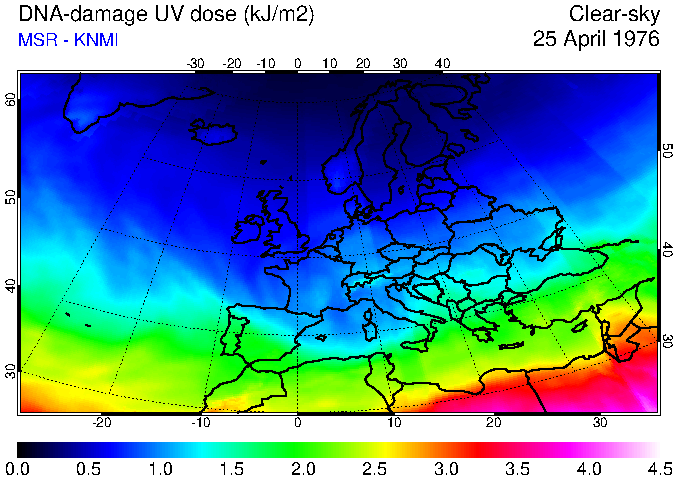 DNA-damage UV dose of 25 April 1976