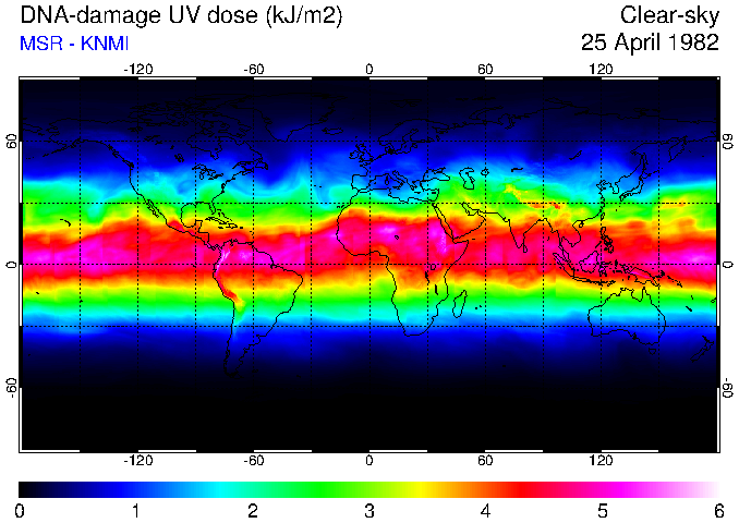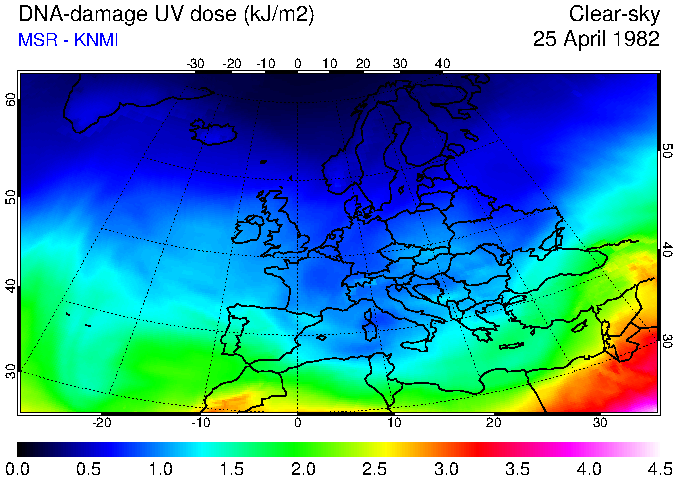 DNA-damage UV dose of 25 April 1982