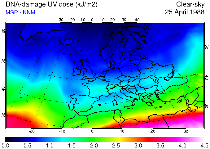 DNA-damage UV dose of 25 April 1988