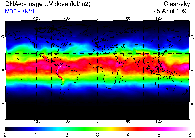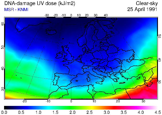 DNA-damage UV dose of 25 April 1991