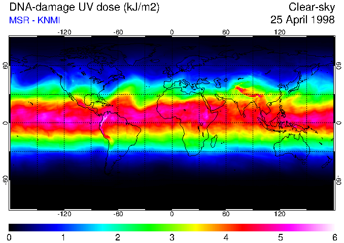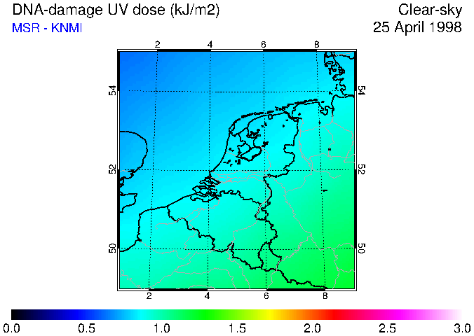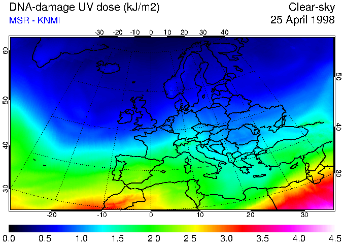 DNA-damage UV dose of 25 April 1998