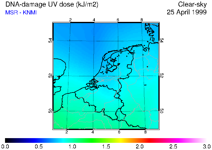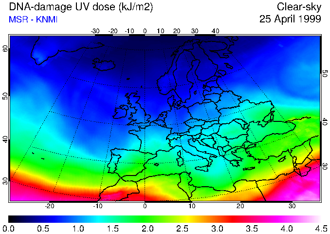 DNA-damage UV dose of 25 April 1999