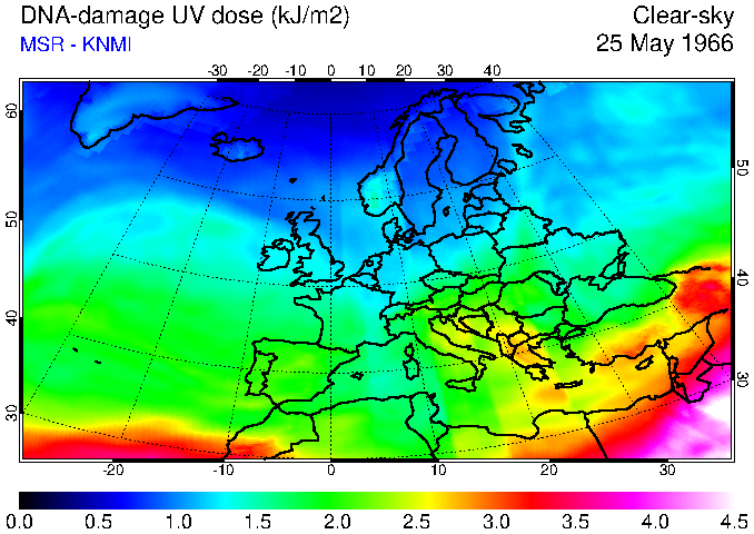 DNA-damage UV dose of 25 May 1966