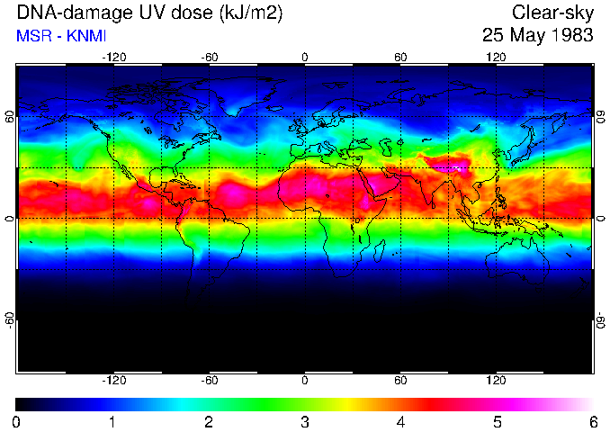 Daily UV dose:   erythemal  |  vitamin-D  |  DNA-damage