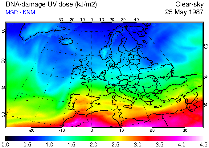 DNA-damage UV dose of 25 May 1987