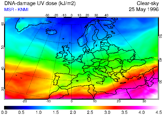 DNA-damage UV dose of 25 May 1996