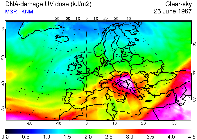 DNA-damage UV dose of 25 June 1967