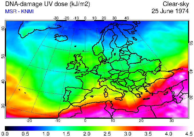 DNA-damage UV dose of 25 June 1974