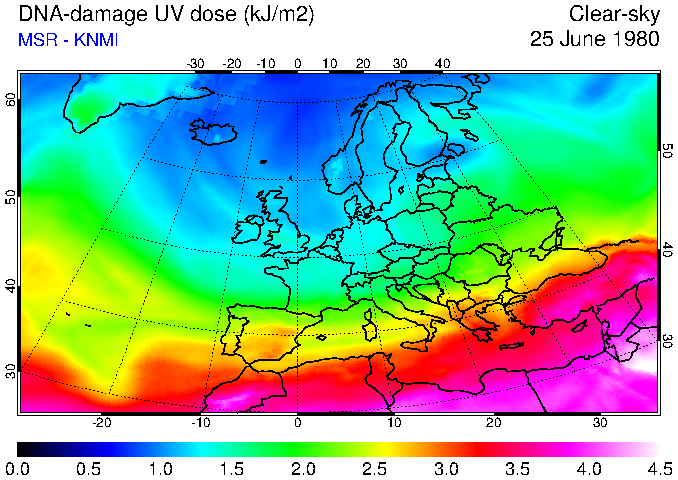 DNA-damage UV dose of 25 June 1980