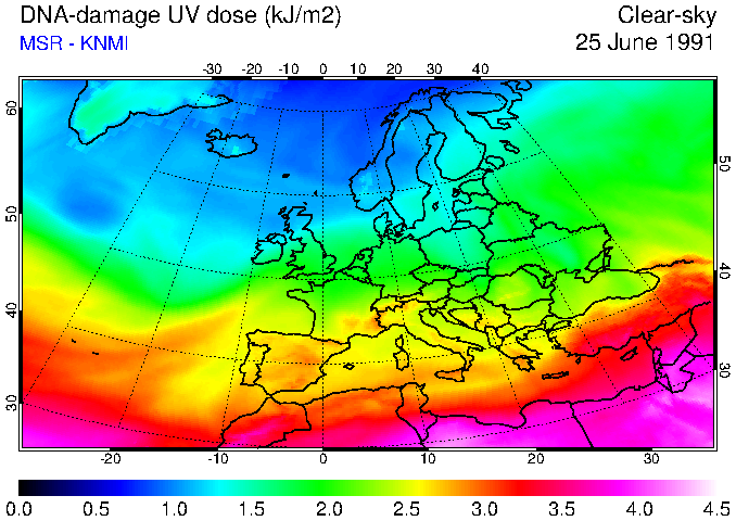 DNA-damage UV dose of 25 June 1991