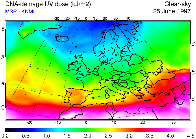 DNA-damage UV dose of 25 June 1997
