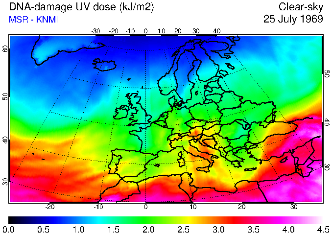 DNA-damage UV dose of 25 July 1969