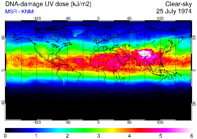 DNA-damage UV dose of 25 July 1974