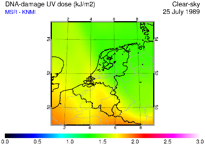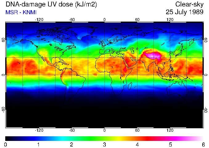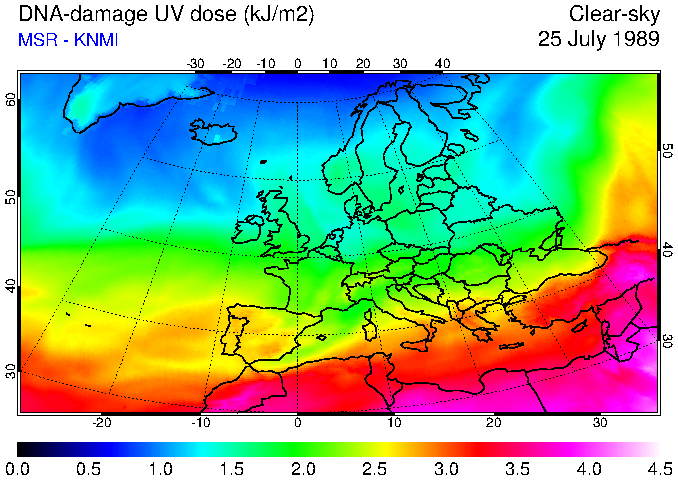 DNA-damage UV dose of 25 July 1989