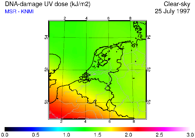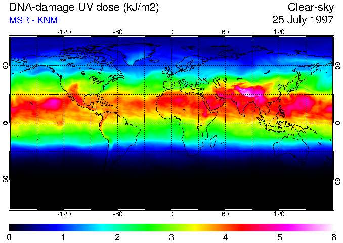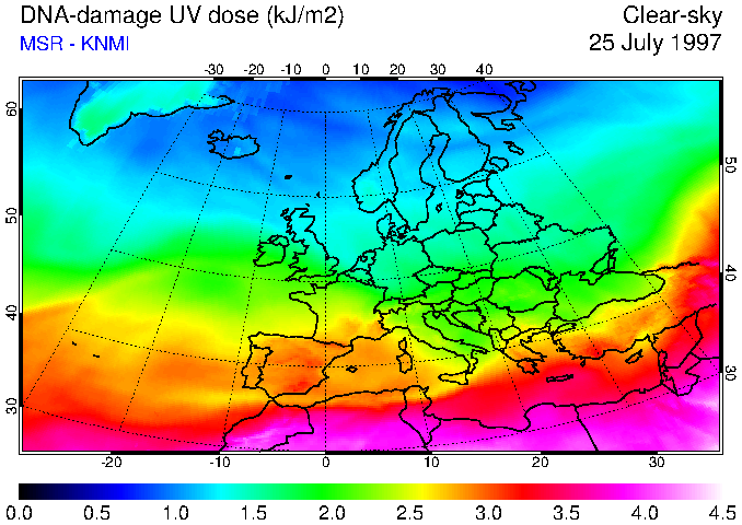 DNA-damage UV dose of 25 July 1997