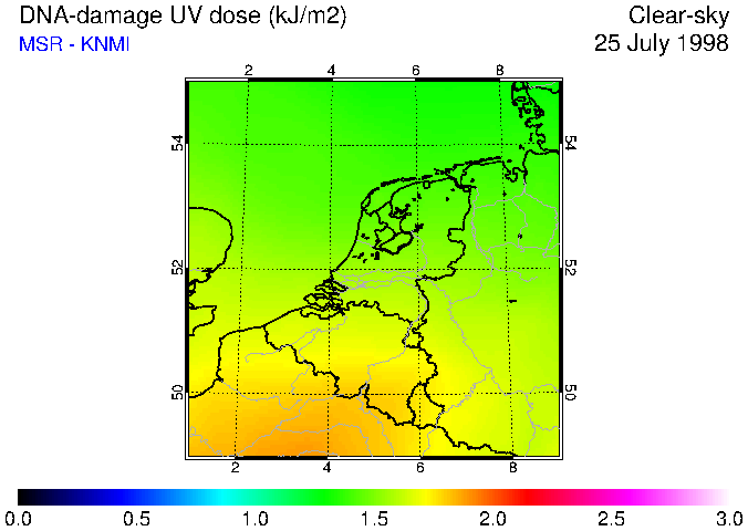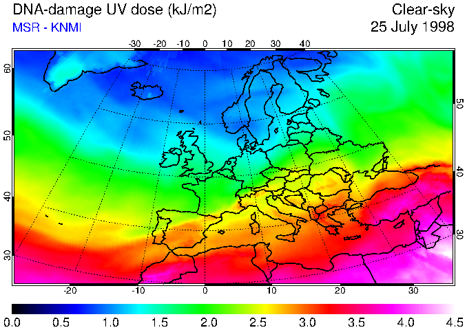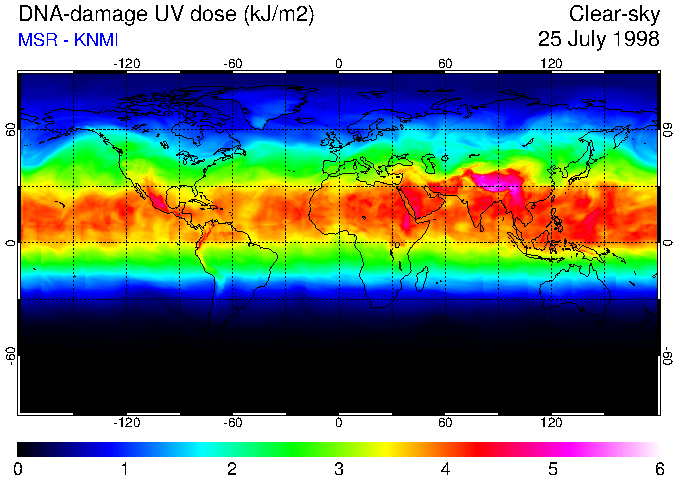 DNA-damage UV dose of 25 July 1998