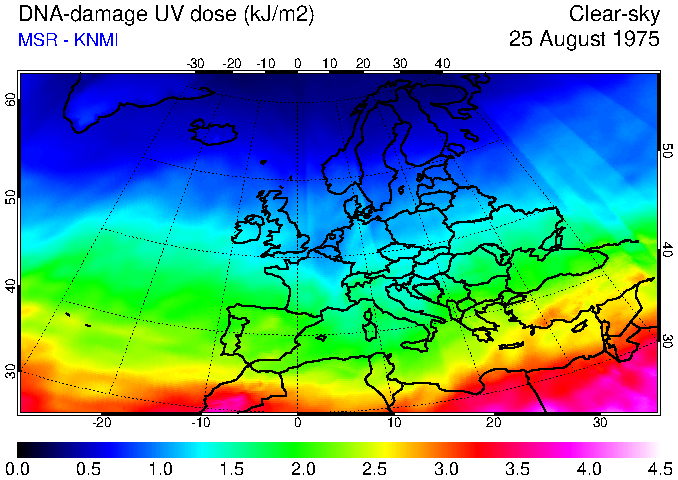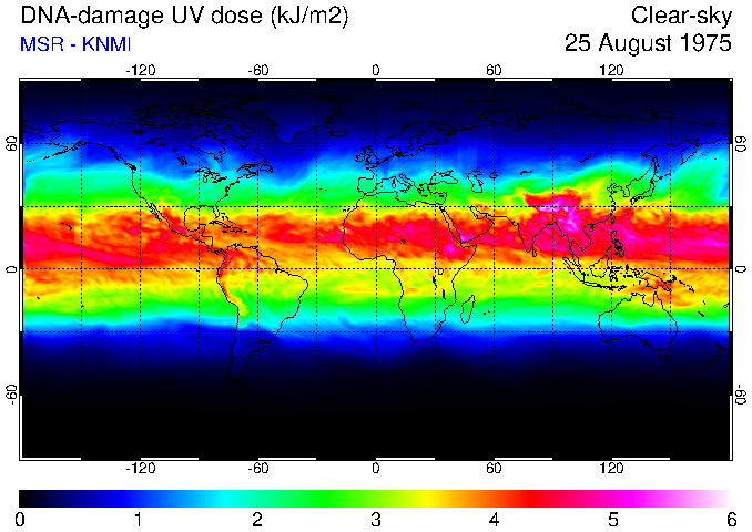 DNA-damage UV dose of 25 August 1975