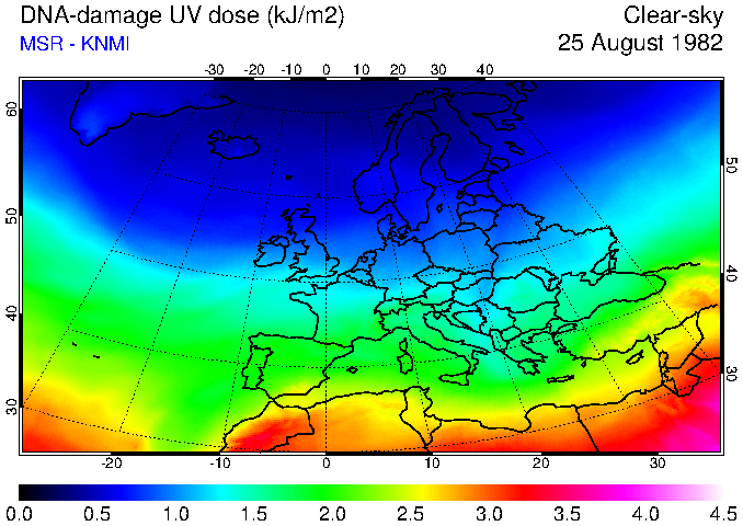 DNA-damage UV dose of 25 August 1982
