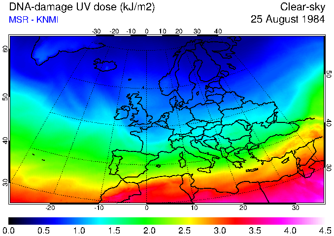 DNA-damage UV dose of 25 August 1984