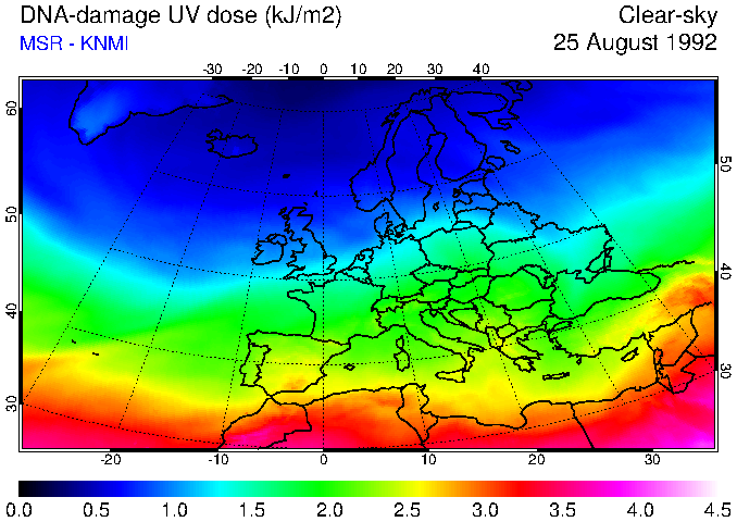 DNA-damage UV dose of 25 August 1992