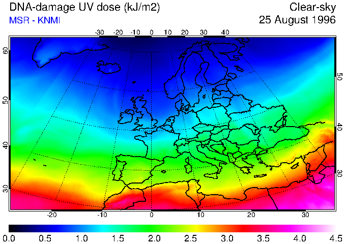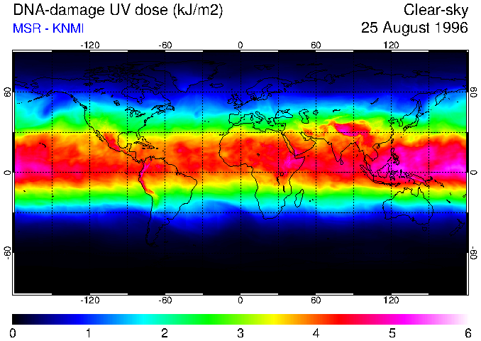 DNA-damage UV dose of 25 August 1996
