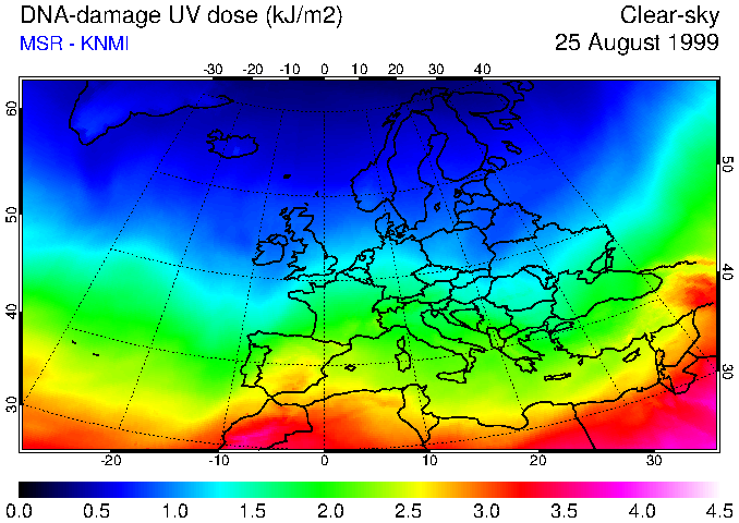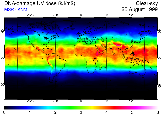 DNA-damage UV dose of 25 August 1999