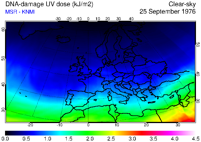 DNA-damage UV dose of 25 September 1976