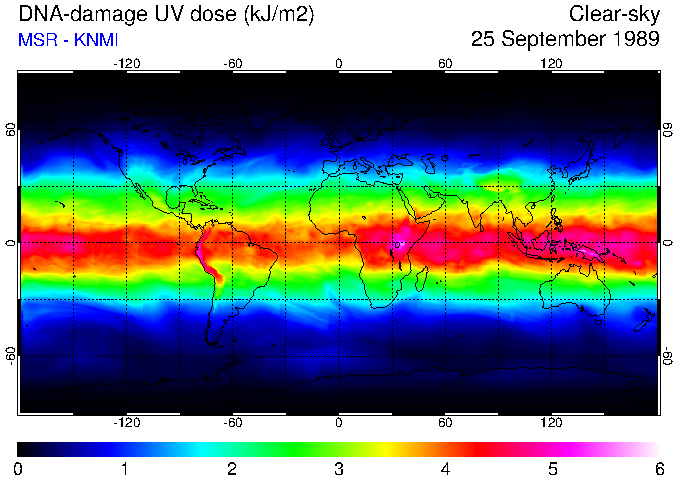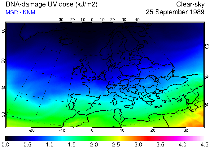 DNA-damage UV dose of 25 September 1989
