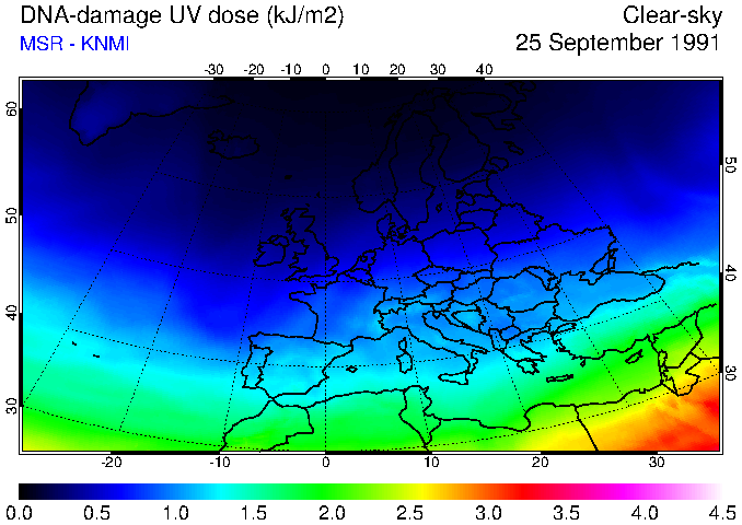 DNA-damage UV dose of 25 September 1991