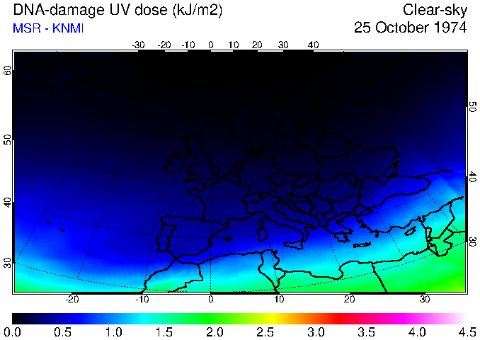 DNA-damage UV dose of 25 October 1974