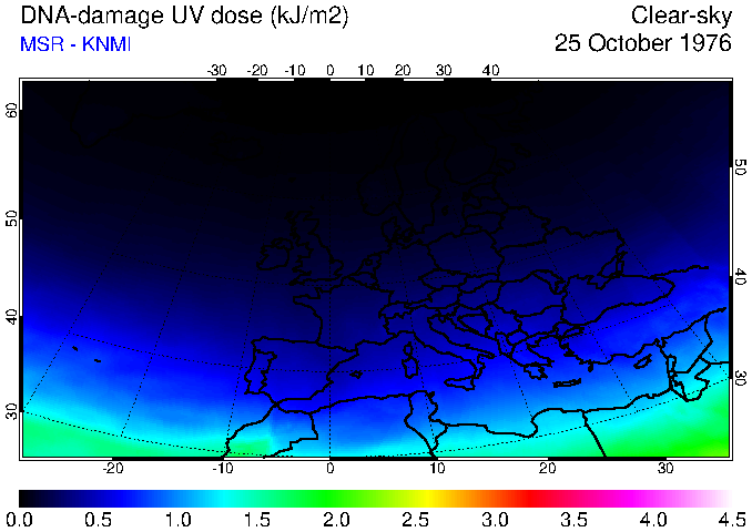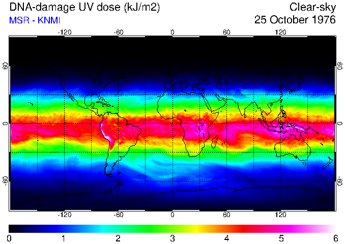 DNA-damage UV dose of 25 October 1976