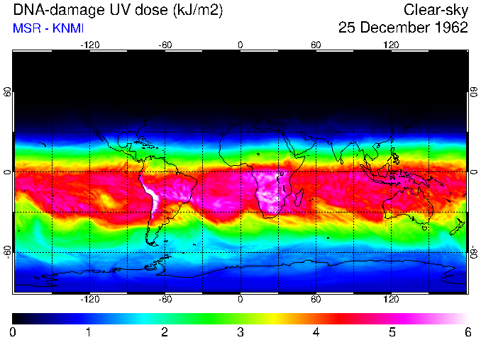 Daily UV dose:   erythemal  |  vitamin-D  |  DNA-damage