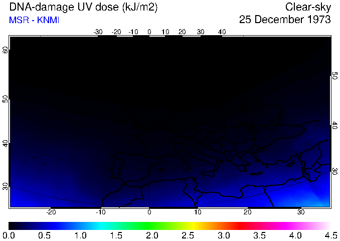 DNA-damage UV dose of 25 December 1973