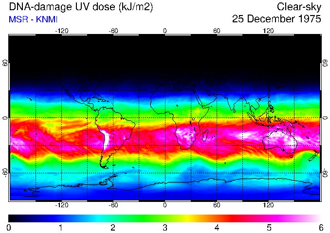 DNA-damage UV dose of 25 December 1975