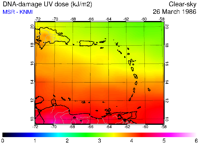 Clear-sky UV index:   erythemal