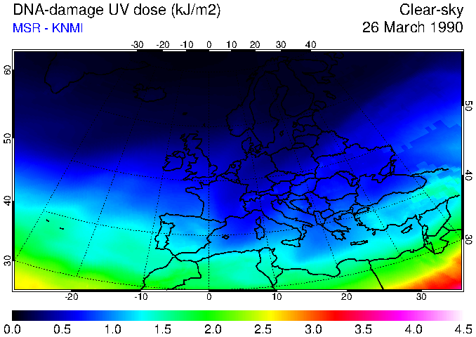 DNA-damage UV dose of 26 March 1990