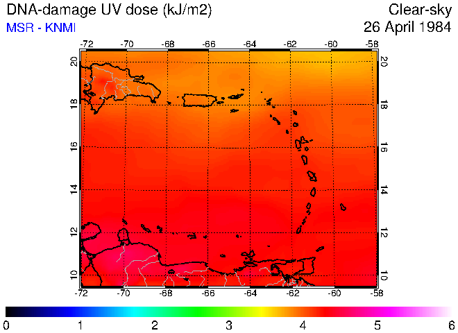 Clear-sky UV index:   erythemal