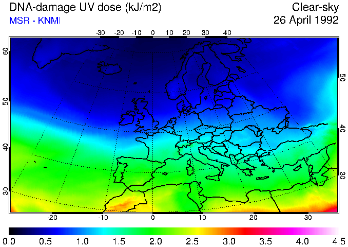 DNA-damage UV dose of 26 April 1992