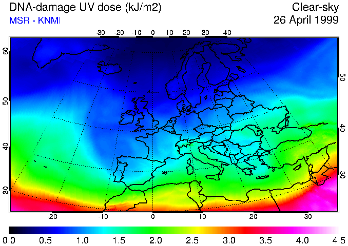 DNA-damage UV dose of 26 April 1999