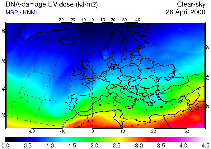DNA-damage UV dose of 26 April 2000